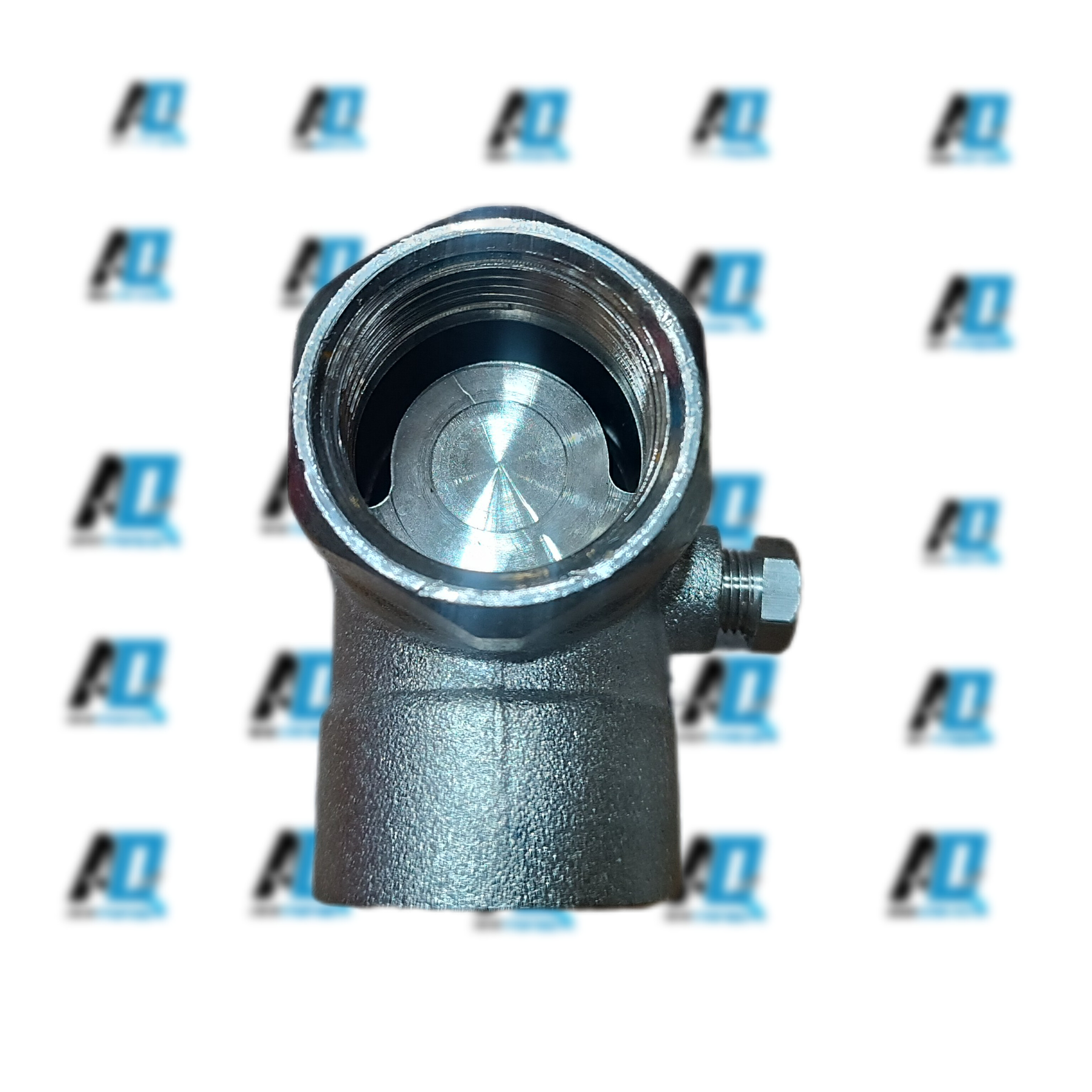 شیر یط طرفه کمپرسور هوا سایز ۱ اینچ قابلیت تحمل فشار تا ۱۶ بار دور دنده داخل . استفاده معمول بین کمپرسور های با تولید ۶۰۰ لیتر در دقیقه به بالا .